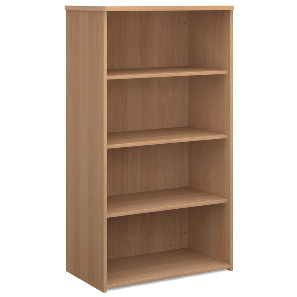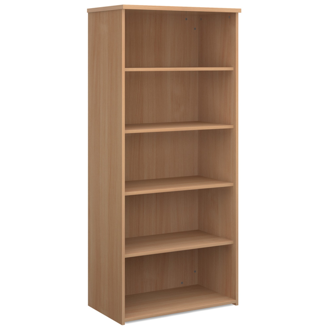 The Infinite wooden bookcase is designed to fit with a choice of office ranges such as the Maestro, Momento and Adapt, this bookcase is perfect finish for your office décor and storage solutions. The Infinite Bookcase is available in 2, 3, 4, 5 or 6 shelf versions and is available in 5 MFC finishes (Beech, Grey Oak, Oak, Walnut and White). The Wooden Bookcase features an 18mm solid back and a solid colour carcass.