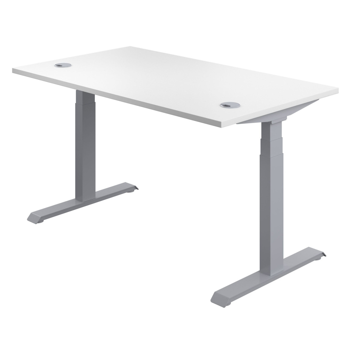 The Olton Height Adjustable Straight Office Desk is ideal for use both home and commercial offices. It is available in 3 width options (1200mm, 1400mm and 1600mm), offers a strong and sturdy Cantilever frame available in White or Silver and is available in a choice of 4 colour finishes (Beech, Grey Oak, Oak and White). As well as this, the Olton Desks offer 25mm thick tops, metal to metal fixings and is FSC Certified. The Olton Desk comes with a 5 year guarantee and is available to be delivered flatpacked.