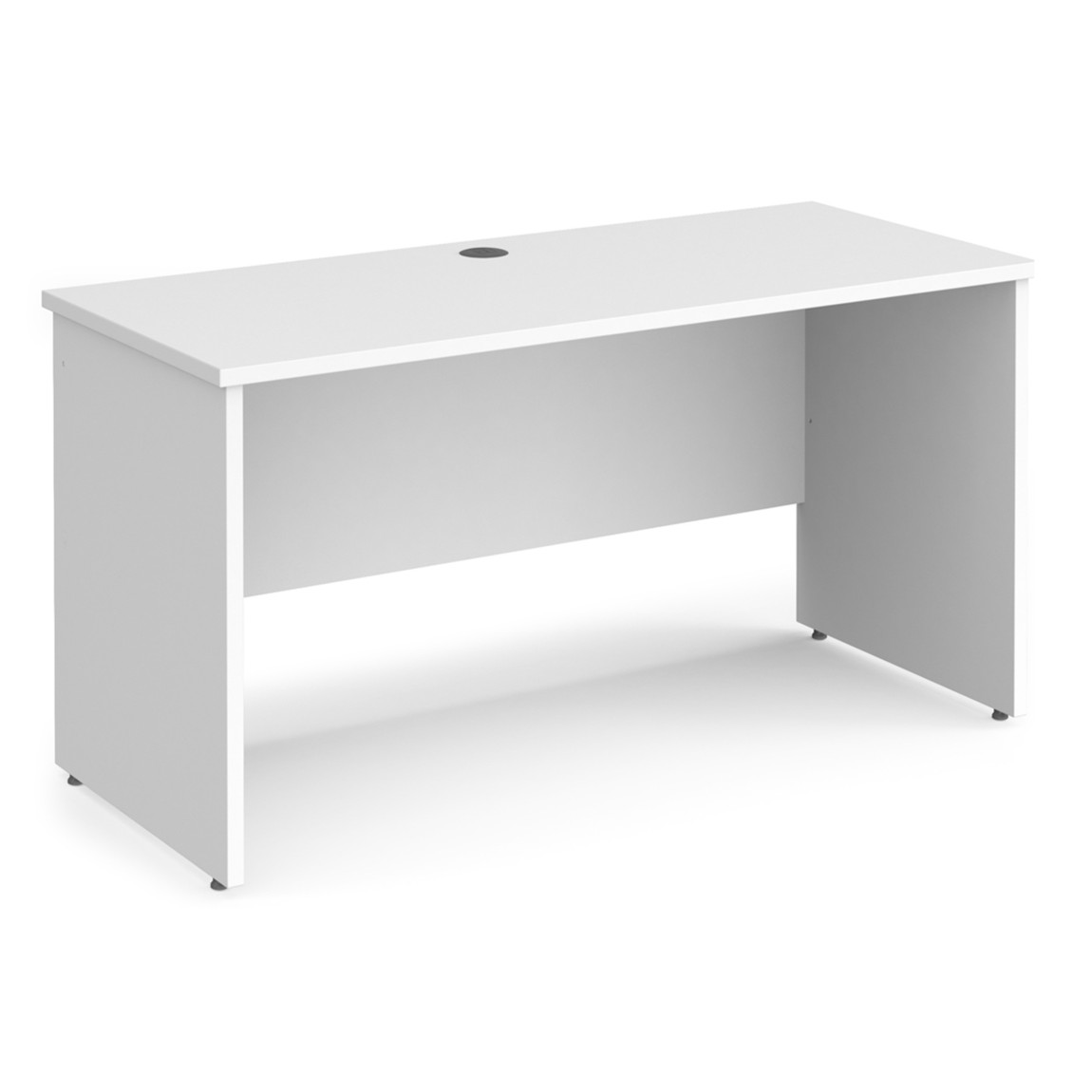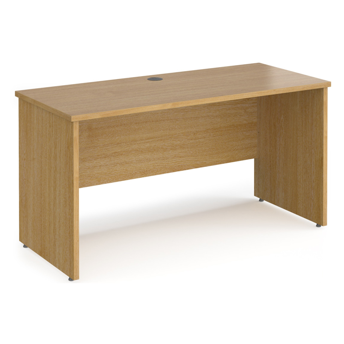- Rectangular desks 600mm deep with panel end legs and two cable access ports.