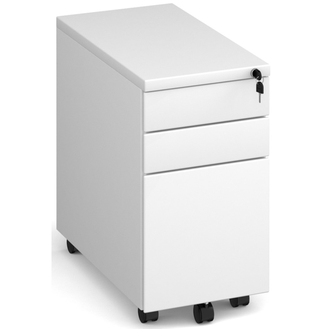 These versatile, durable three drawer narrow pedestals are ideal for smaller work areas