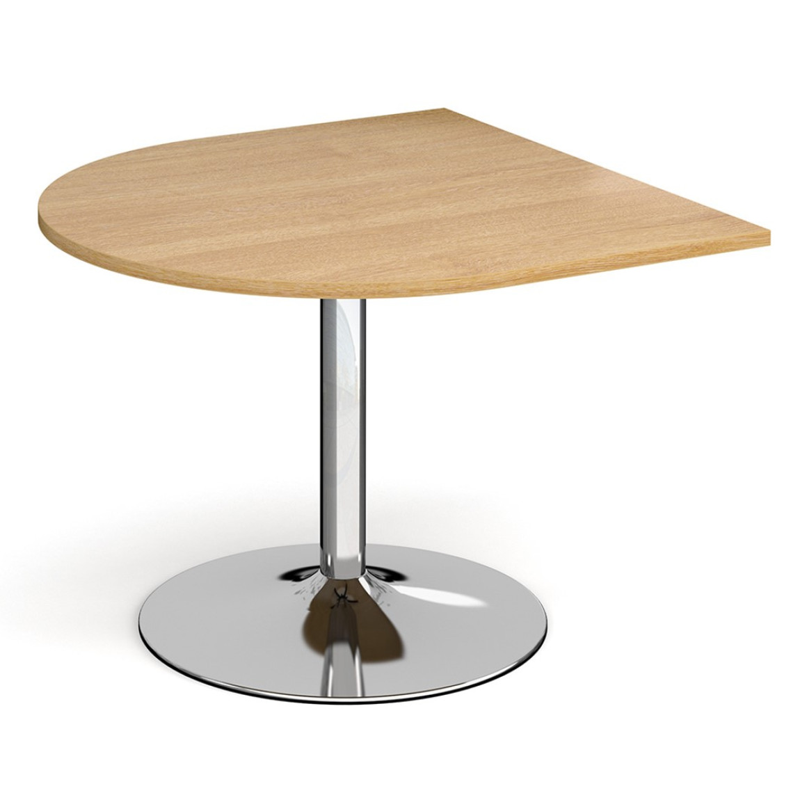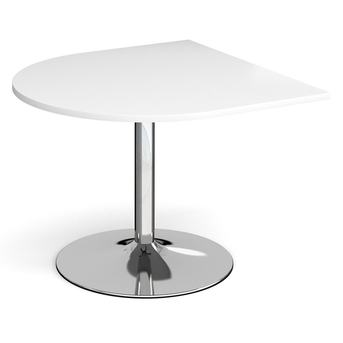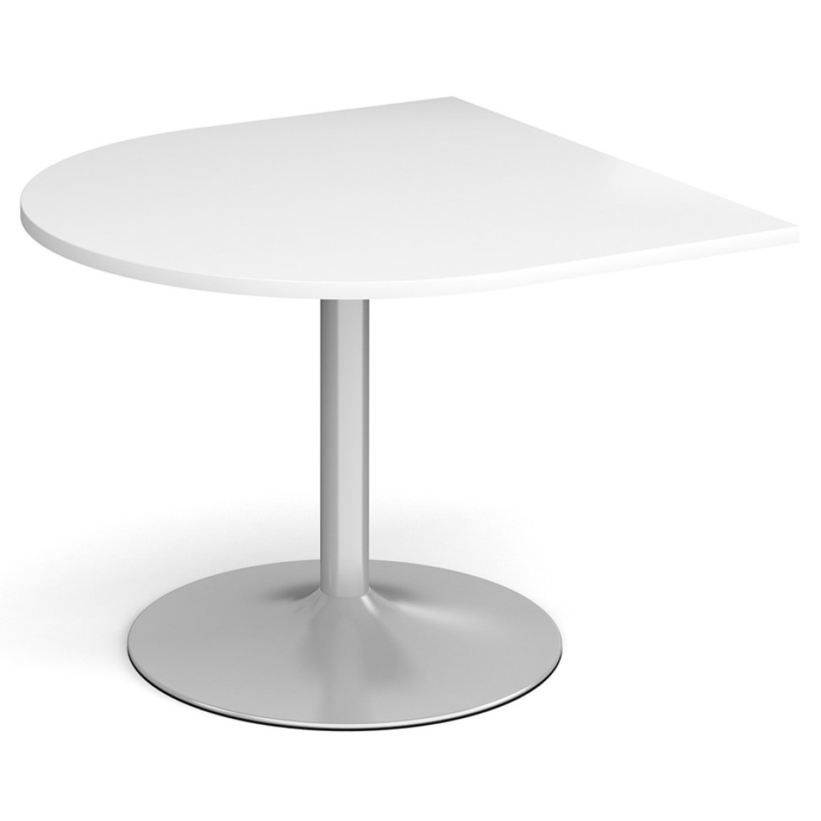 Stylish range of extension tables for making your existing boardroom table bigger. Finished with a silver steel trumpet base. Available with a choice of five different colour table top finishes