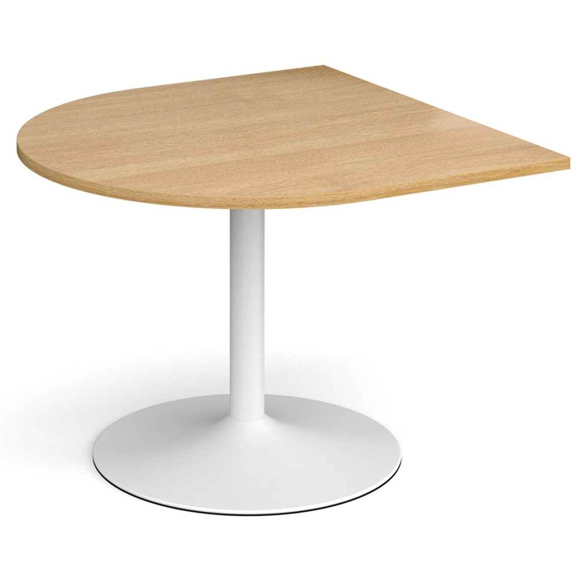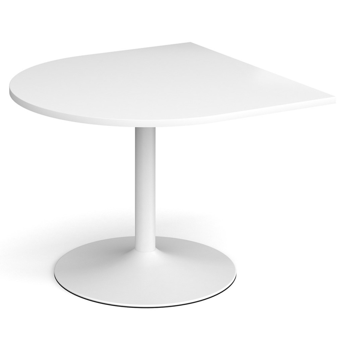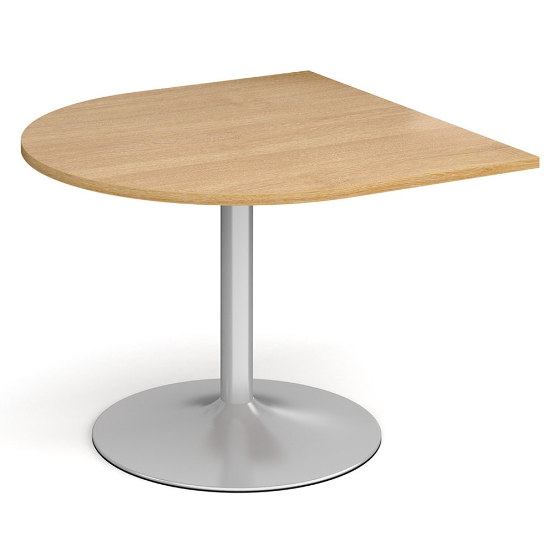Stylish range of extension tables for making your existing boardroom table bigger. Finished with a silver steel trumpet base. Available with a choice of five different colour table top finishes