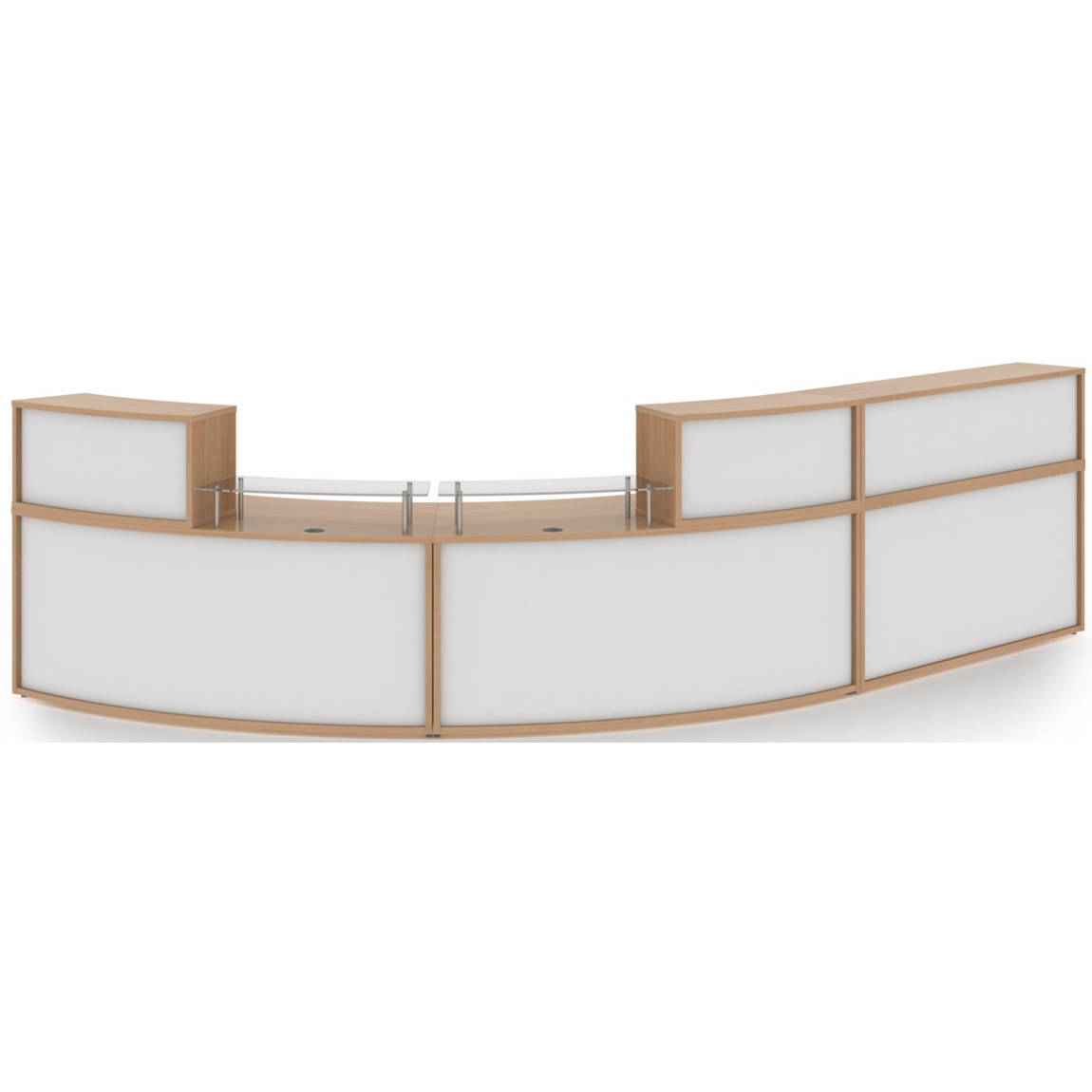 The reception area is of critical importance or any business. It needs to be a welcoming space for all visitors, from valued customers to prospective new starters arriving for an interview. Available in beech with optional white panels, Denver is a flexible modular unit that can be arranged in a variety of configurations with the base and top units to create a commanding reception feature that will make a lasting first impression.