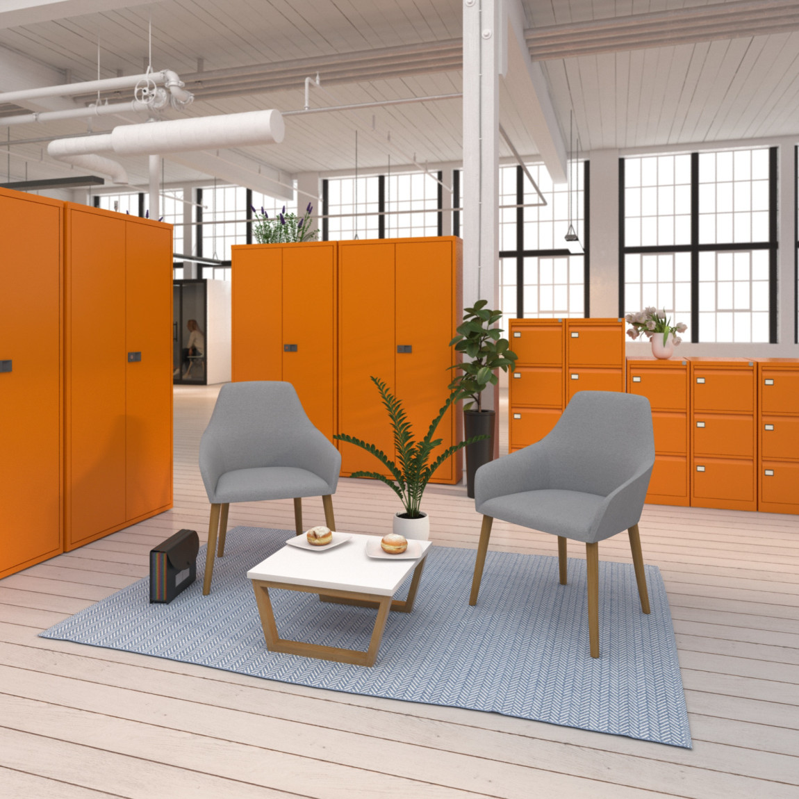 Ideal around a coffee table in a reception or waiting area