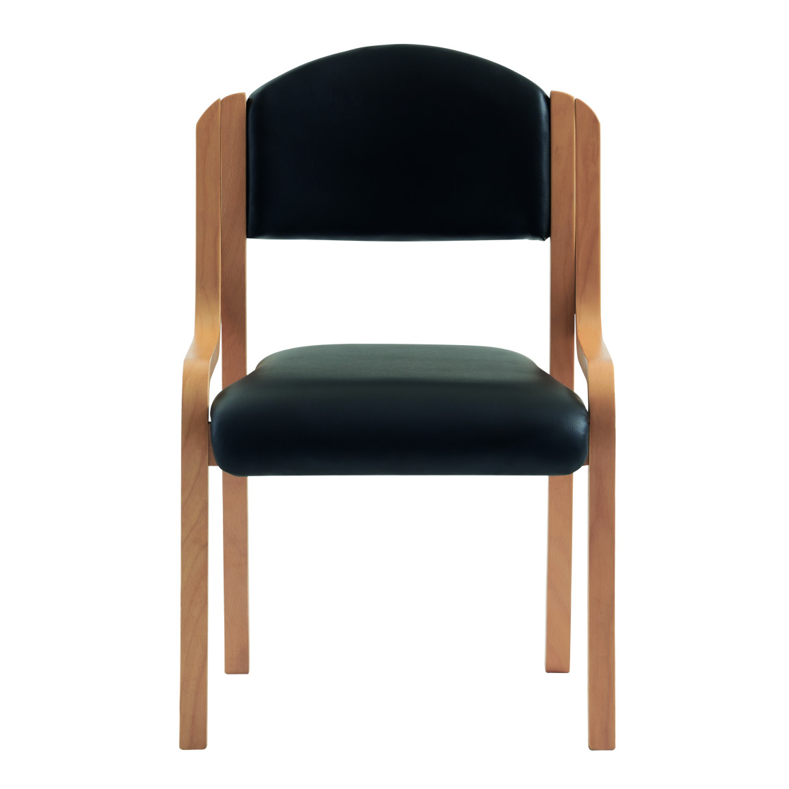 Leather and wood design visitors chair, perfect for reception areas and boardroomsBlack leather face..