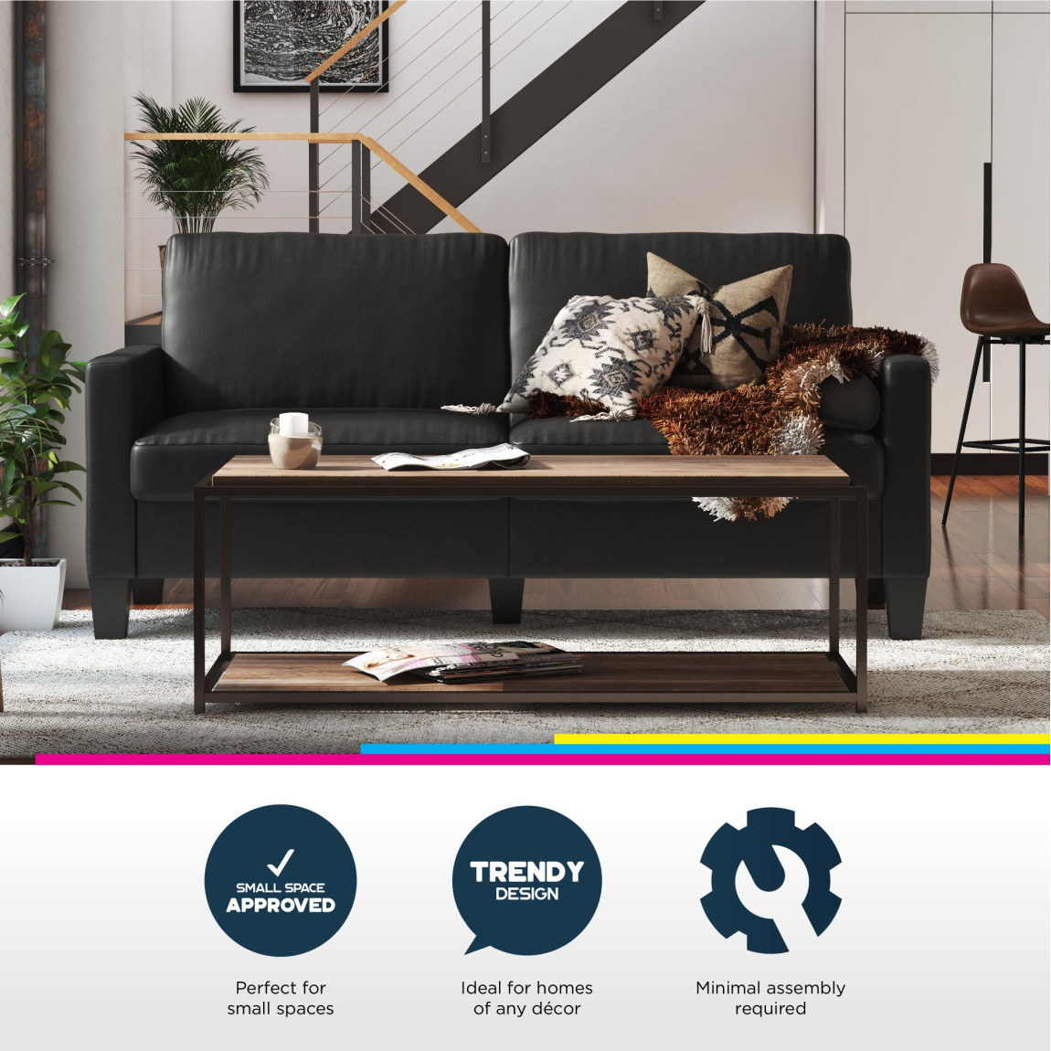 Transitional small spaces sofa with easy-to-clean PVC free polyurethane upholstery