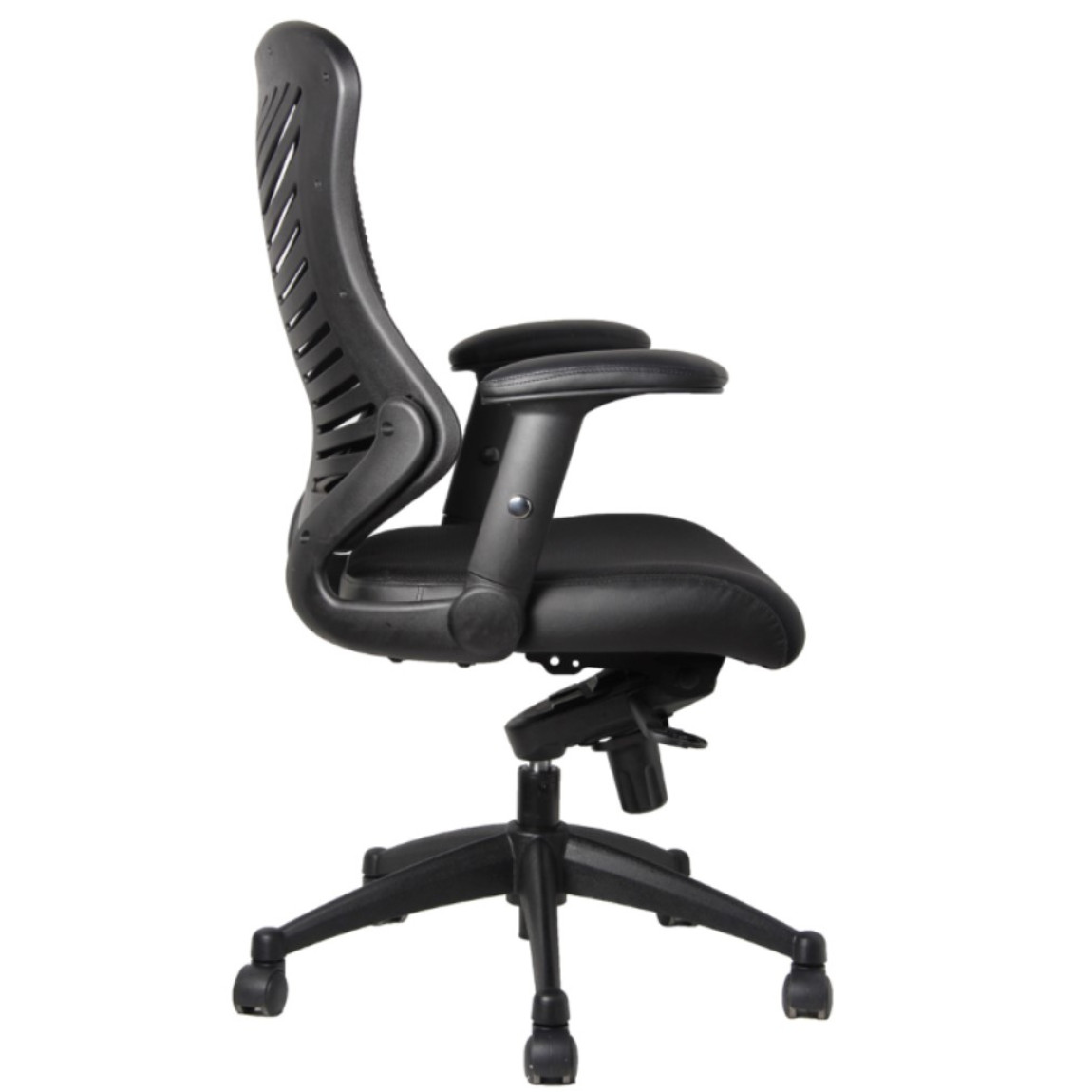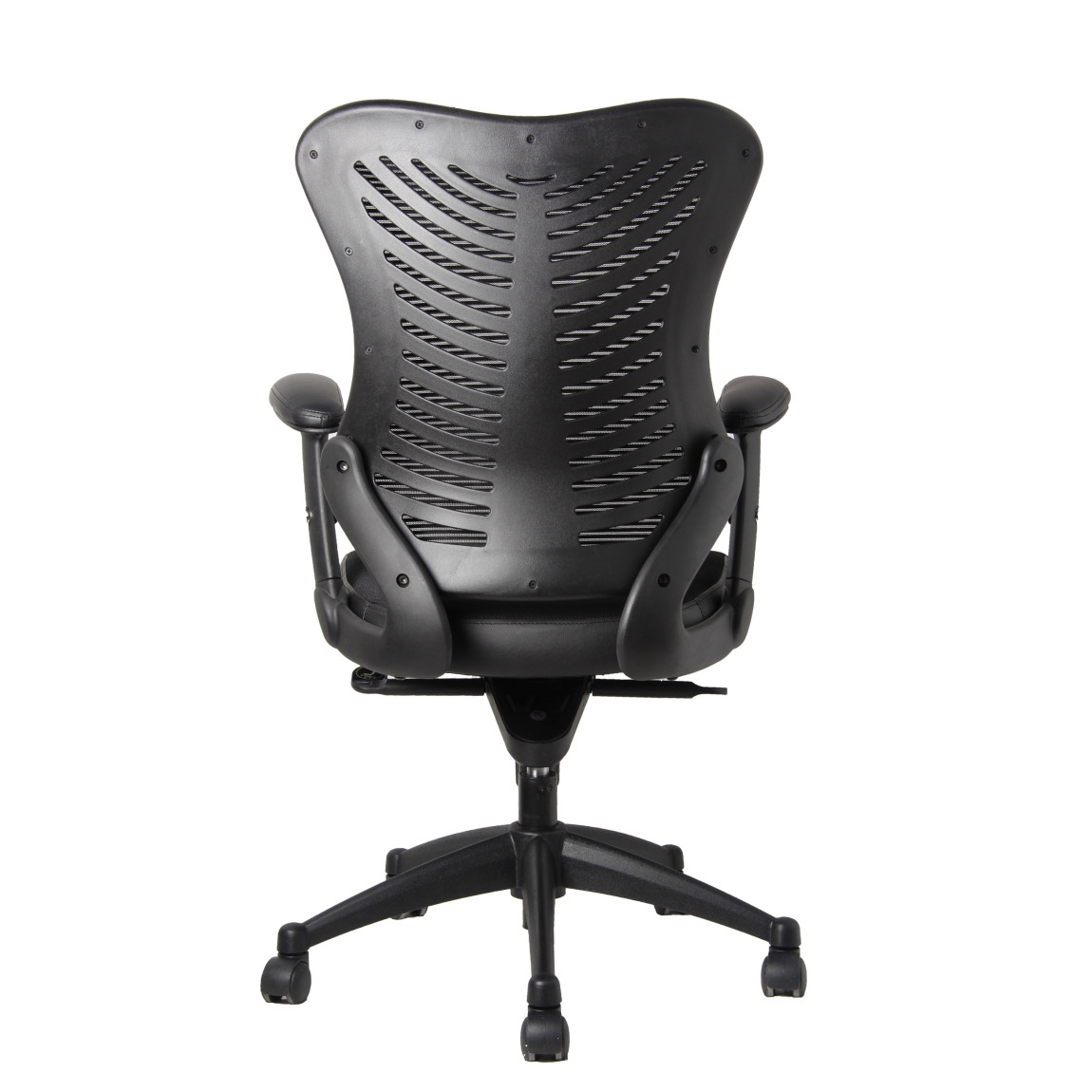 The Spine High Back Black Mesh Operator Chair has padded mesh seat with faux leather trim, unique spinal back detail with a tilt lock with tension control and gas lift. Height adjustable arms with foam and fabric faux leather arm rests, twin lever control mechanism. Only aviailable in black mesh fabric.