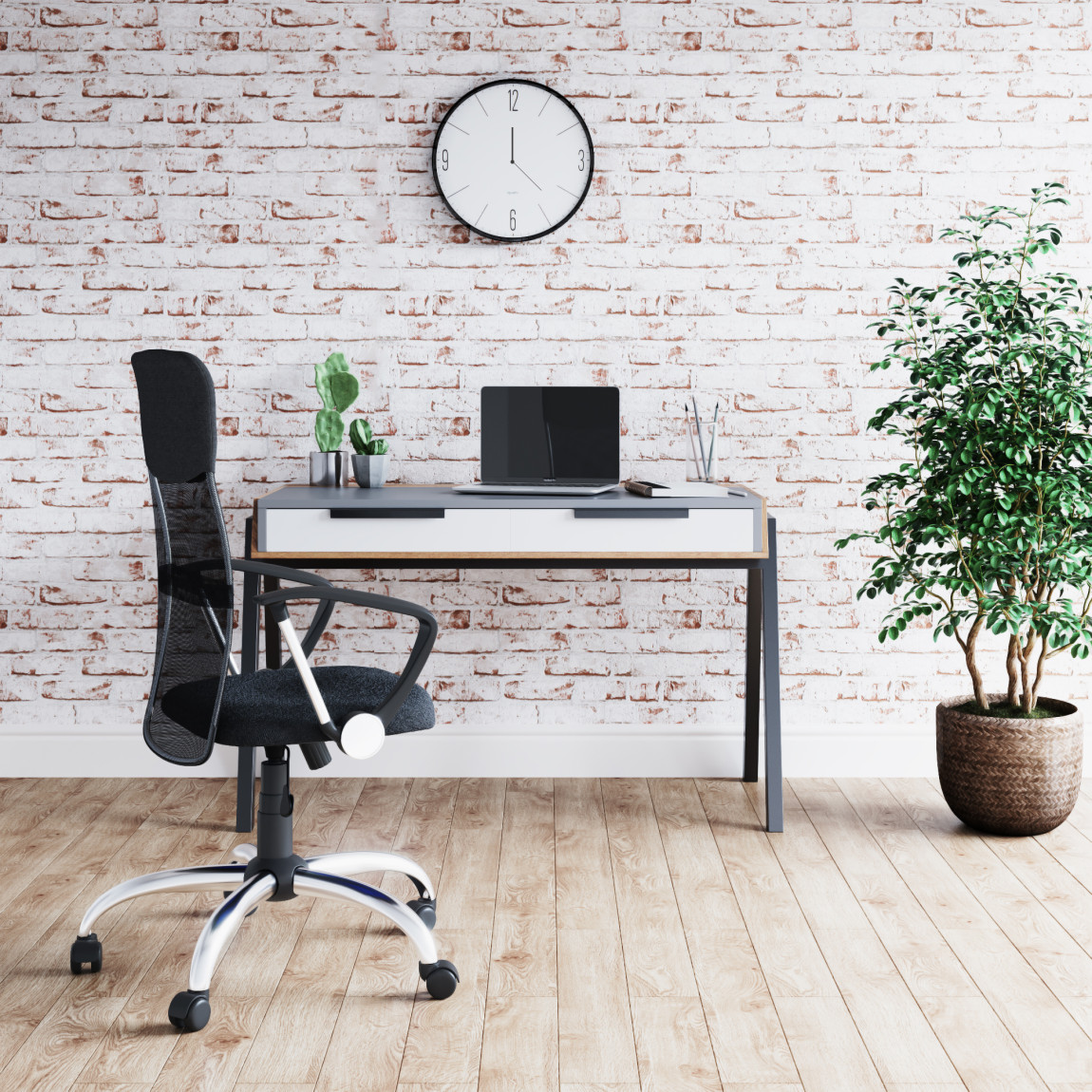 If you are looking for a contemporary desk designed for both style and practicality then look no further than the Geneva Desk. The beautiful grey steel angled legs perfectly complement the walnut effect wrap and white drawer fronts. The Geneva featured 2 large drawers with metal handles, and a large rear power adapter or multi plug storage with flip up hinge and cable management.