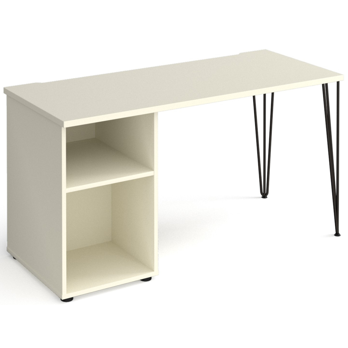 Give your workspace a mid-century modern upgrade with the Tikal workstation with black hairpin legs, which will add both stability and style to any home furniture setting. Available with triple slimline rods, the hairpin legs sit at a reclined angle in each corner oof the desktop, complemented by matching hairpin feet for the wooden storage unit and chic shelf brackets.