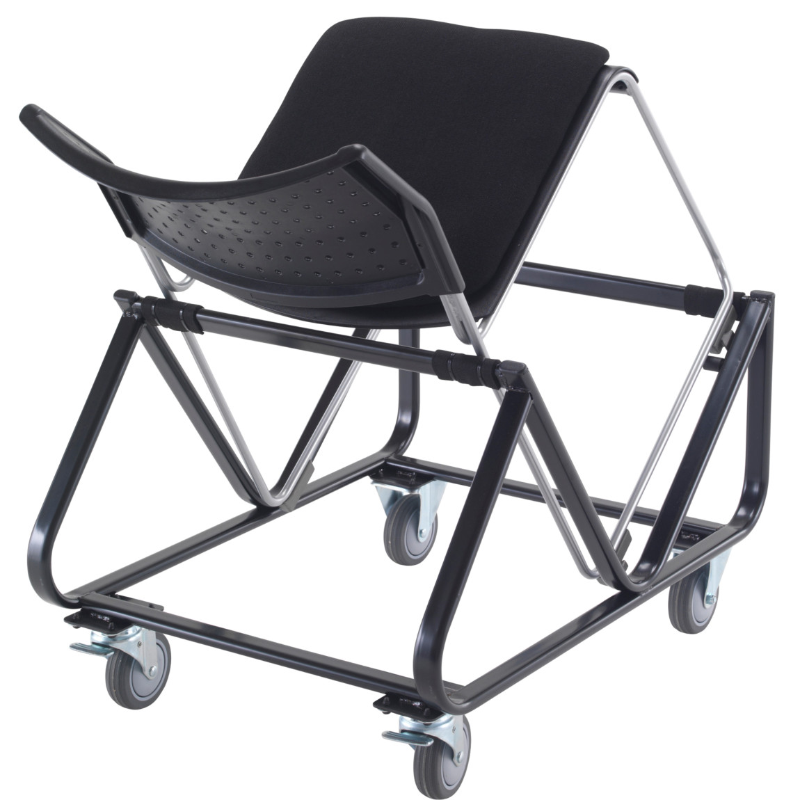 The Twilight Trolley is made to safely transport up to 25 stacked Twilight chairs. The Trolley is available in black and comes with 4 wheels (2 are lockable).