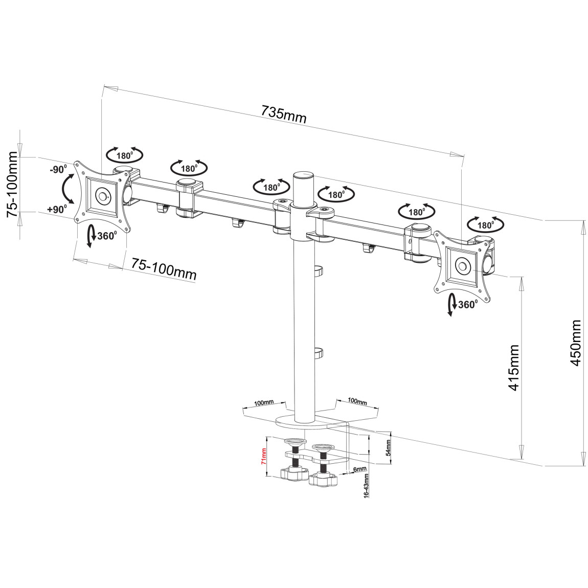 Adjustable height: fix monitors 10 to 40cm from the desk