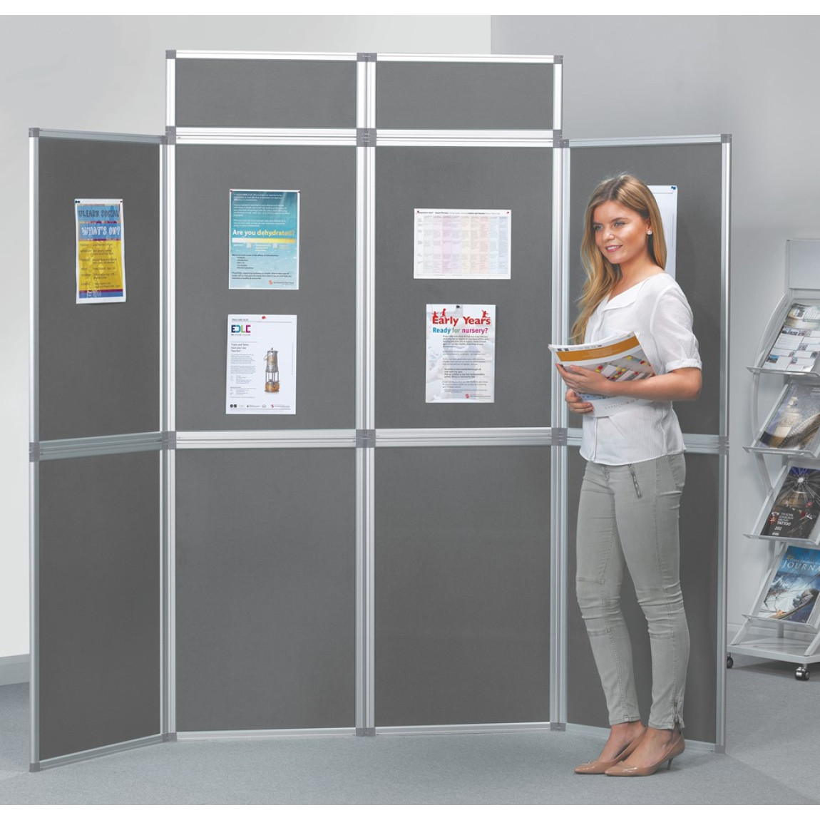 - Double-sided panels are 600(w) x 900mm(h) and hinged together in two sections (except desktop version)