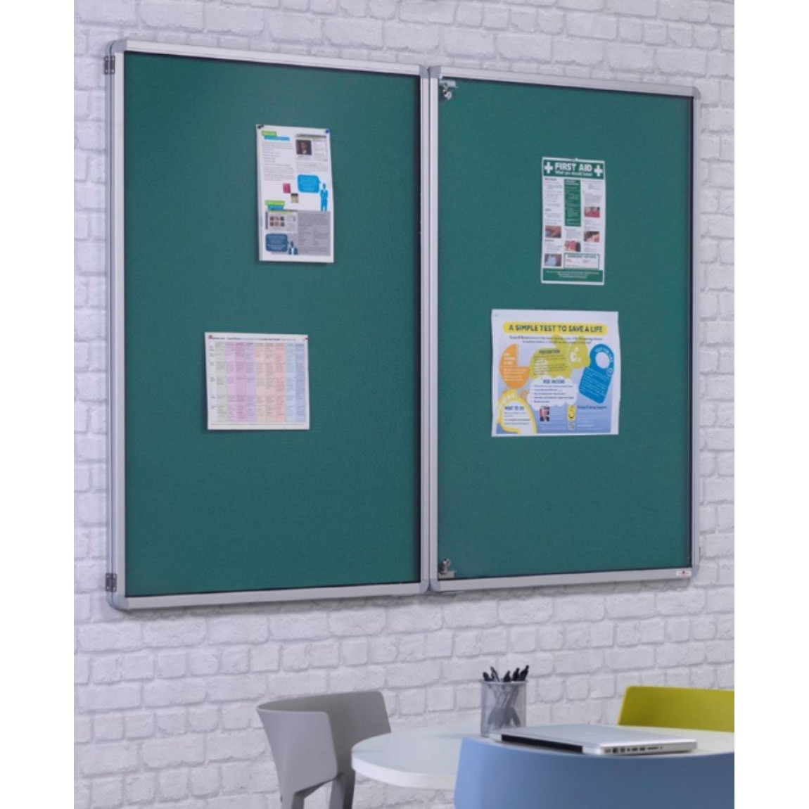 Satin silver anodised aluminium frame Felt fabric cover or corkRounded safety corners and conceal..
