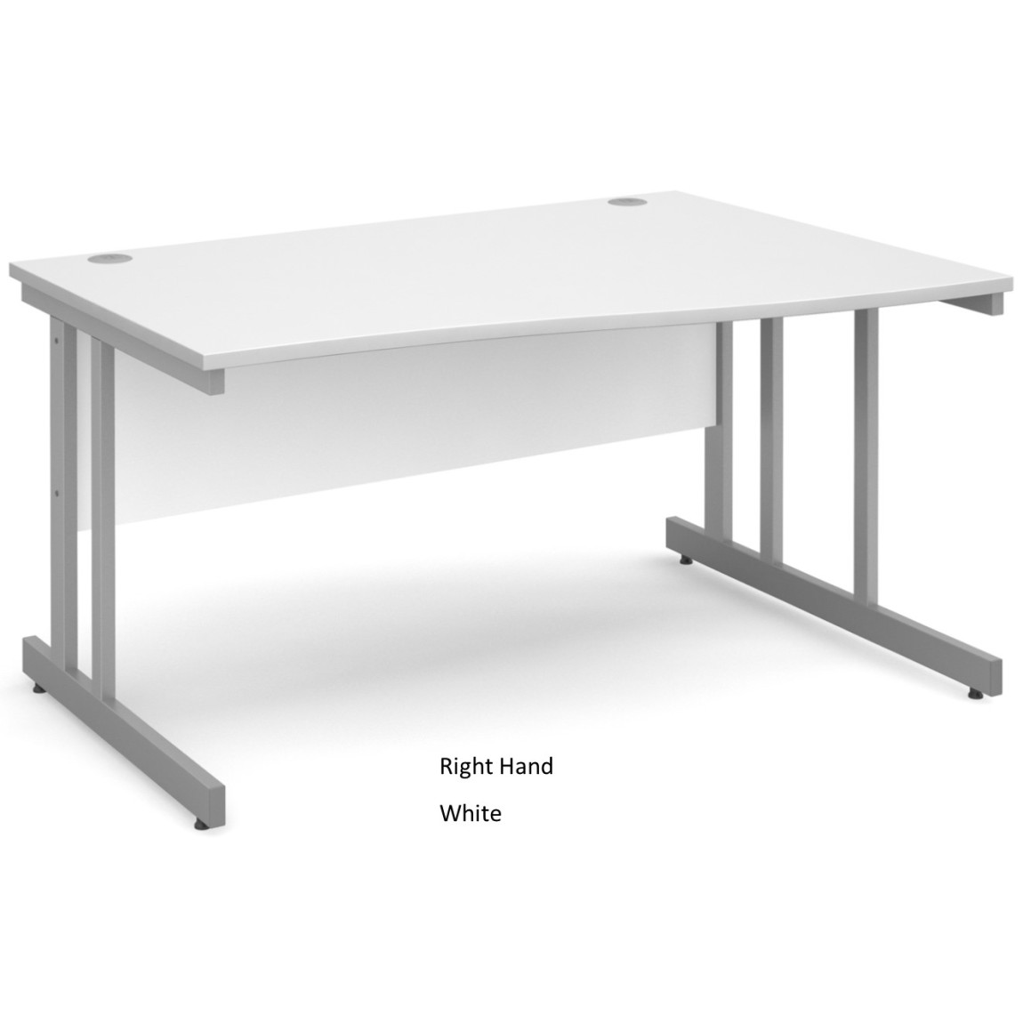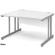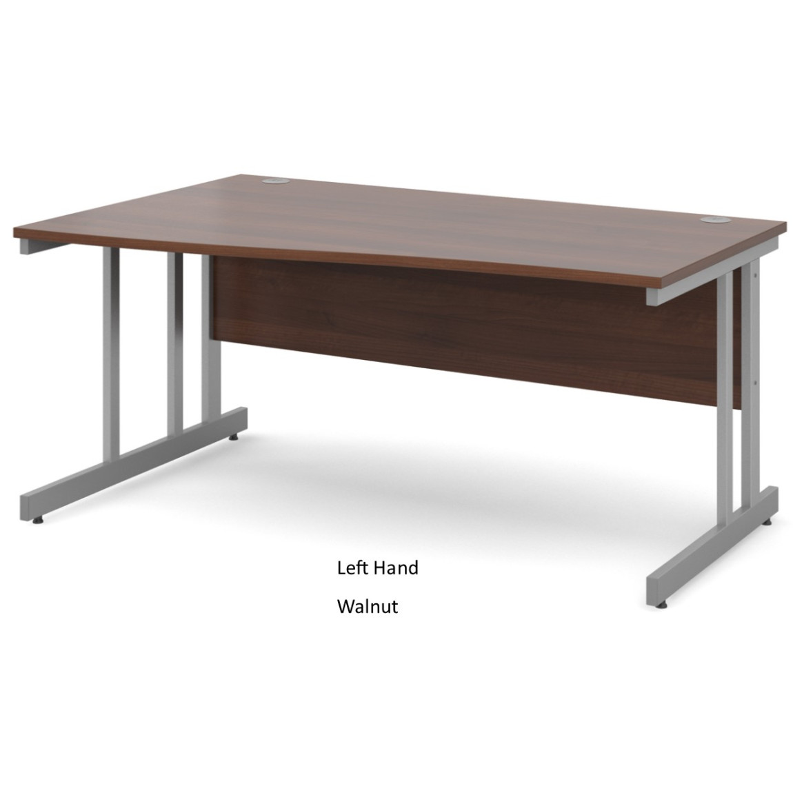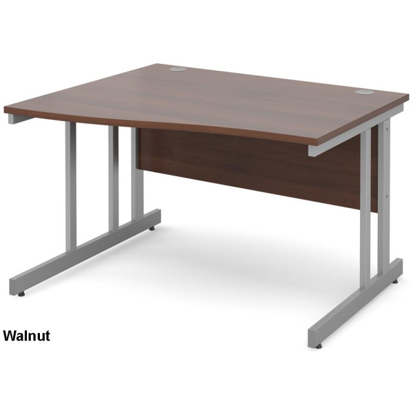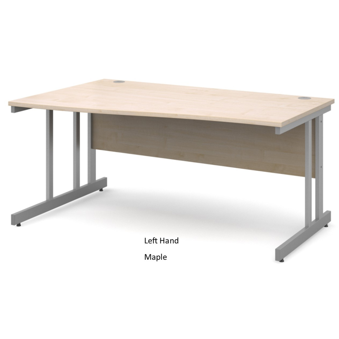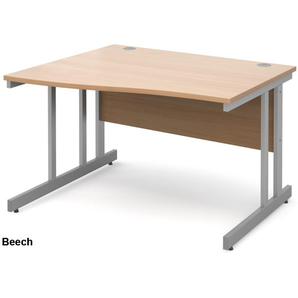 The Momento Wave Office Desk is available in both Left Hand and Right Hand versions, it is available in a choice of 2 widths (1400mm and 1600mm) and a choice of 5 colours (Beech, Maple, Oak, Walnut and White). The Momento Wave Desk features 25mm thick tops, a matching modesty panel, a double upright silver cantilever frame and 2 cable ports. As well as this, the Momento Wave Desk offers 3mm ABS edging to add additional protection and adjustable feet for stability.