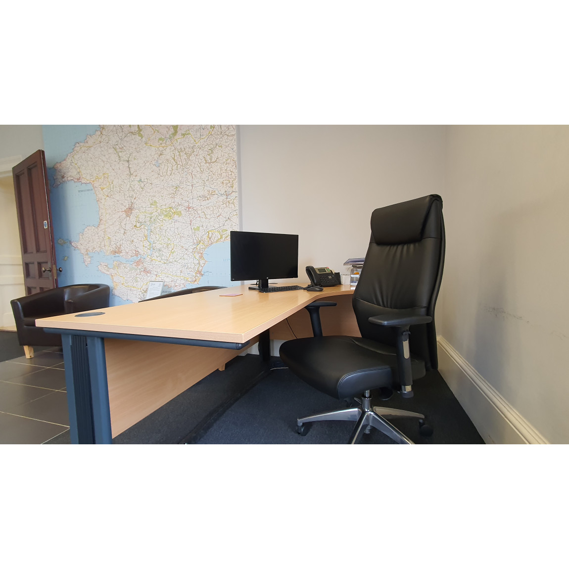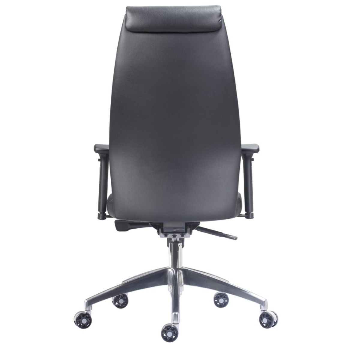 Executive High Back Black Faux Leather Managers Chair. The Executive chair comes in black faux leather. Aluminium five star base with heavy duty castors, features pivoting height adjustable arms with sliding arm pads. Free flow tension control mechanism with gas lift.