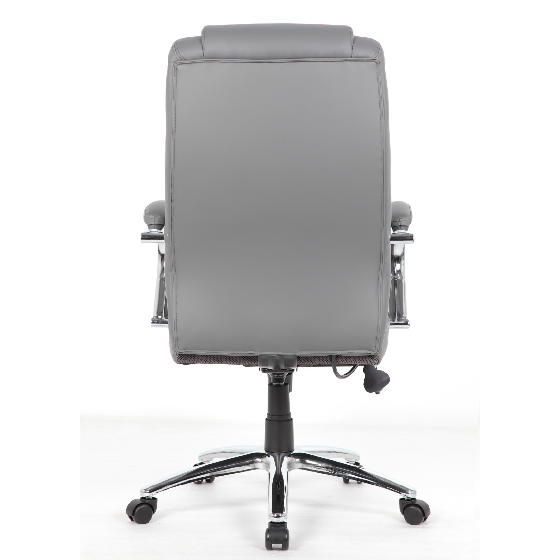 - Fixed chrome armrests with padded black bonded leather tops.