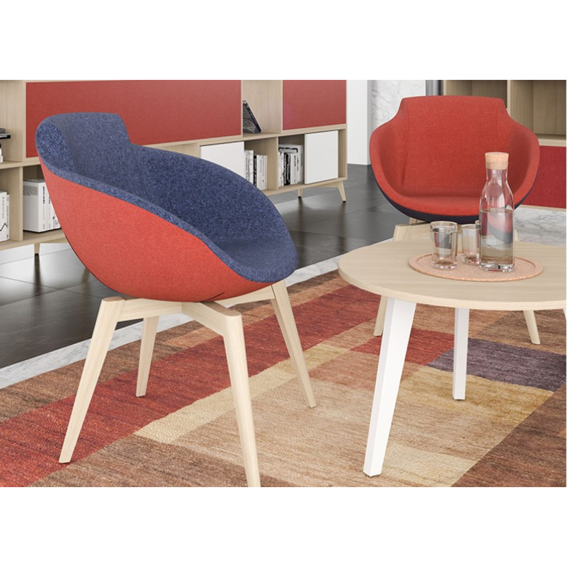 armchair with round forms is an invitation to relax.